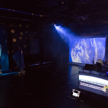 "Houston, I love you" to manifest miłości do Ziemi, opowiedziany przez historię pierwszego załogowego lądowania na powierzchni Księżyca w 1969 roku (misja Apollo 11). To opowieść o oddalaniu się i obserwowaniu się z nowych perspektyw, to próba znalezienia nowych języków, którymi można opowiadać o planecie.